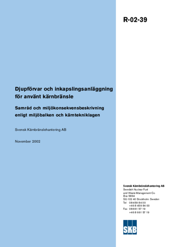 Djupförvar och inkapslingsanläggning för använt kärnbränsle. Samråd och miljökonsekvensbeskrivning enligt miljöbalken och kärntekniklagen