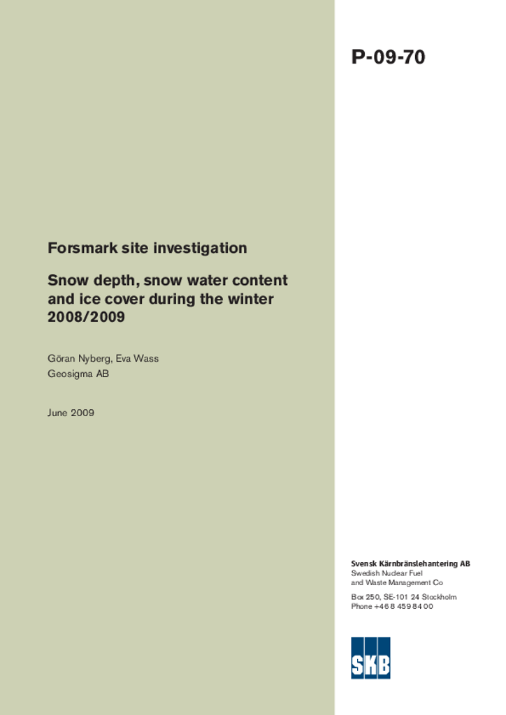 Forsmark site investigation. Snow dpeth, snow water content and ice cover during the winter 2008/2009