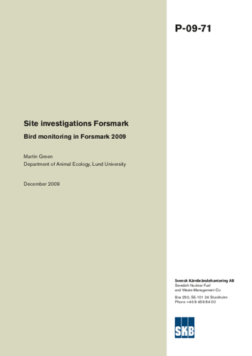 Forsmark site investigation. Bird monitoring in Forsmark 2009