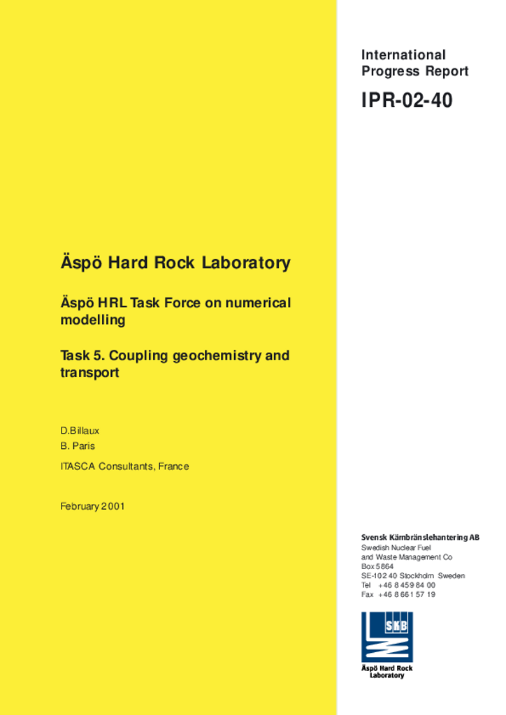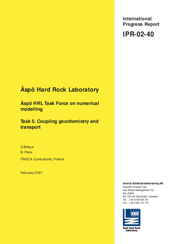 Äspö Hard Rock Laboratory. Äspö HRL Task Force on numerical modelling. Task 5. Coupling geochemistry and transport