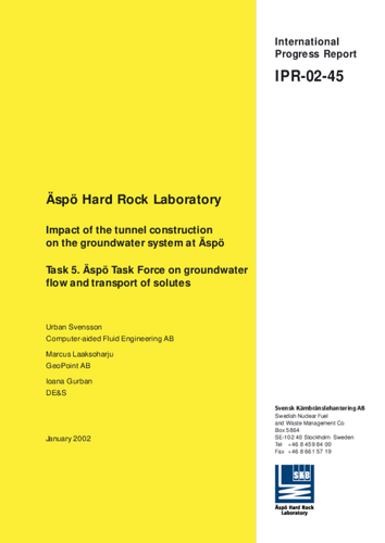 Äspö Hard Rock Laboratory. Impact of the tunnel construction on the groundwater system at Äspö. Task 5. Äspö Task Force on groundwater flow and transport of solutes