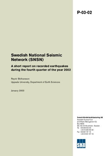 Swedish National Seismic Network (SNSN). A short report on recorded earthquakes during the fourth quarter of the year 2002