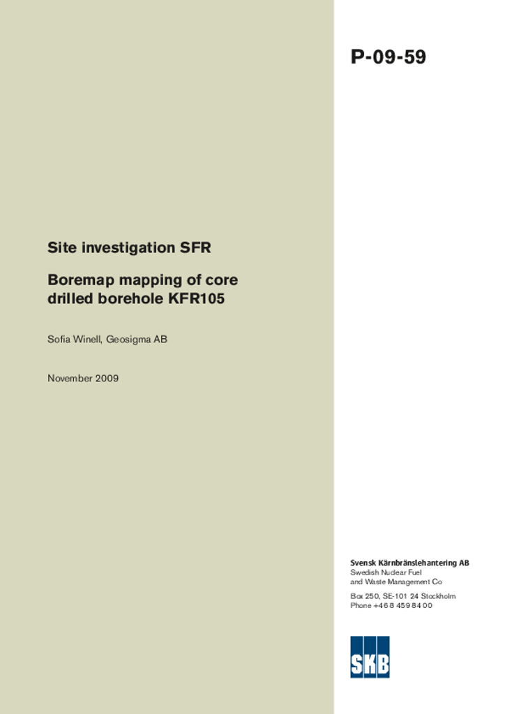 Site investigation SFR. Boremap mapping of core drilled borehole KFR105