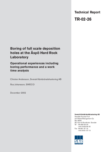 Boring of full scale deposition holes at the Äspö Hard Rock Laboratory. Operational experiences including boring performance and a work time analysis