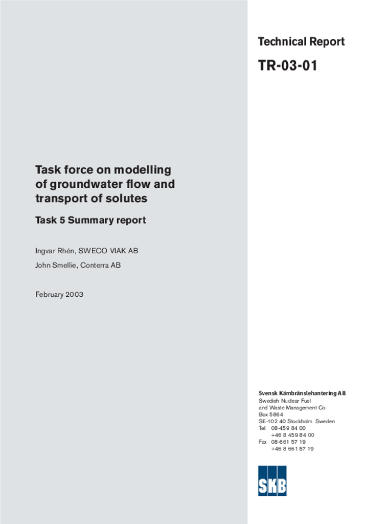 Task force on modelling of groundwater flow and transport of solutes. Task 5 Summary report