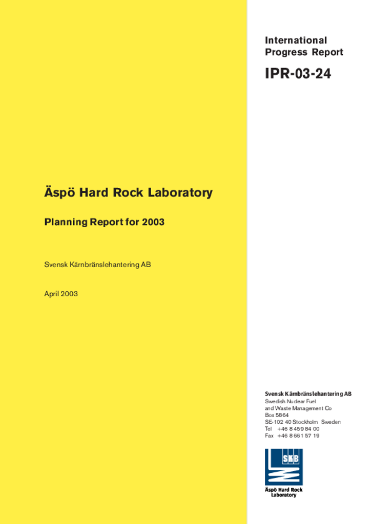 Äspö Hard Rock Laboratory. Planning report for 2003