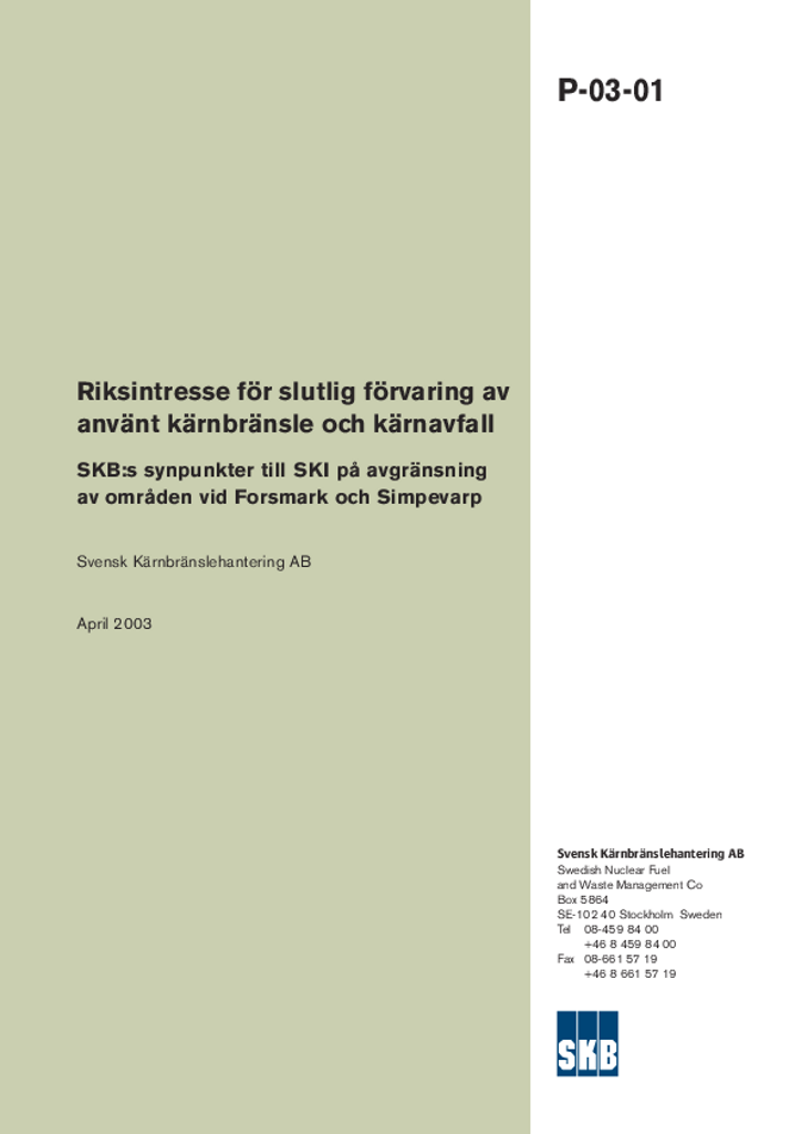 Riksintresse för slutlig förvaring av använt kärnbränsle och kärnavfall. SKB:s synpunkter till SKI på avgränsning av områden vid Forsmark och Simpevarp
