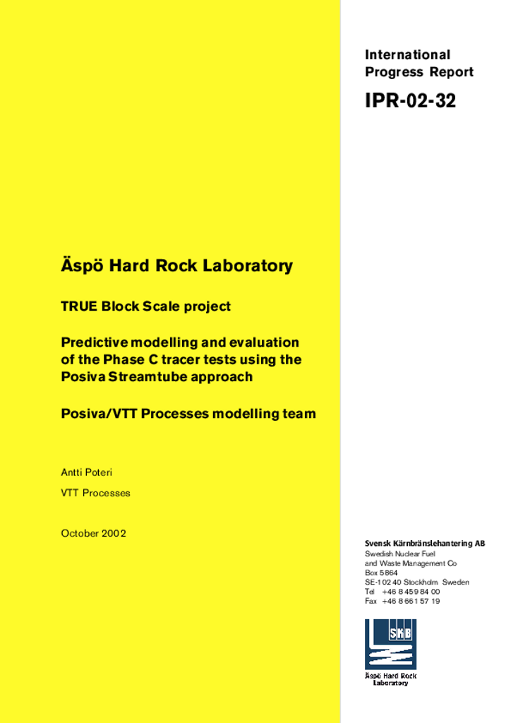 Äspö Hard Rock Laboratory. TRUE Block Scale project. Predictive modelling and evaluation of the Phase C tracer tests using the Posiva Streamtube approach. Posiva /VTT Processes modelling team