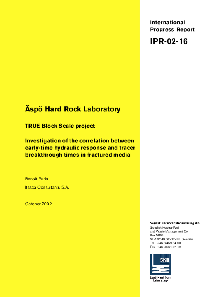 Äspö Hard Rock Laboratory. TRUE Block Scale project. Investigation of the correlation between early-time hydraulic response and tracer breakthrough times in fractured media