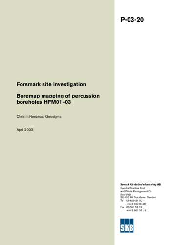 Forsmark site investigation. Boremap mapping of percussion boreholes HFM01-03