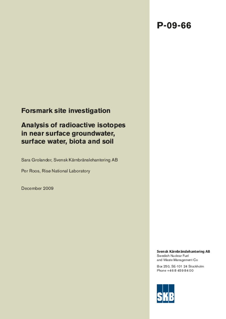 Forsmark site investigation. Analysis of radioactive isotopes in near surface groundwater, surface water, biota and soil
