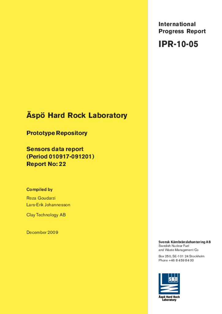 Äspö Hard Rock Laboratory. Prototype Repository. Sensors data report (Period 010917-091201). Report No: 22