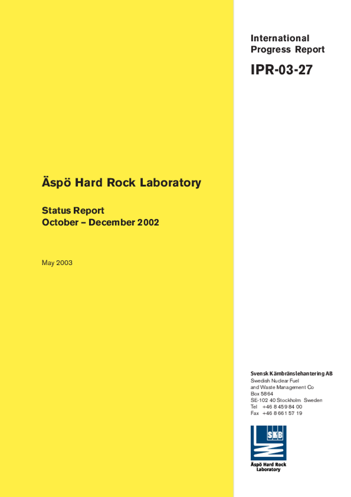 Äspö Hard Rock Laboratory. Status report. October - December 2002