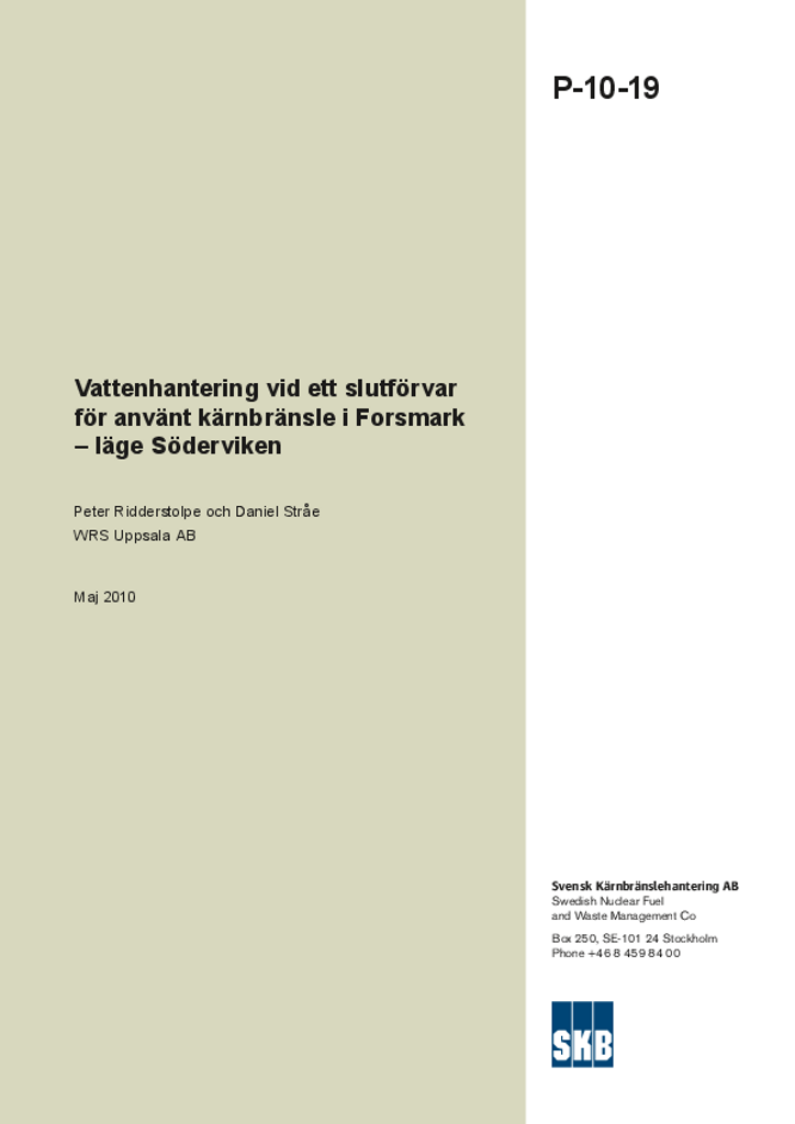 Vattenhantering vid ett slutförvar för använt kärnbränsle i Forsmark - läge Söderviken