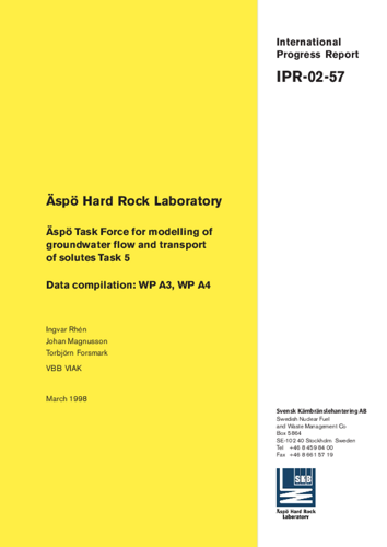 Äspö Hard Rock Laboratory. Äspö Task Force for modelling of groundwater flow and transport of solutes Task 5. Data compilation: WP A3, WP A4