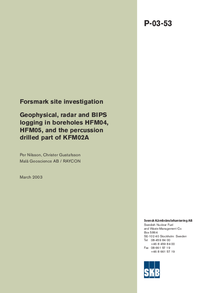 Forsmark site investigation. Geophysical, radar and BIPS logging in boreholes HFM04, HFM05, and the percussion drilled part of KFM02A