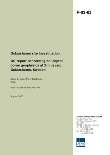 Oskarshamn site investigation. QC-report concerning helicopter borne geophysics at Simpevarp, Oskarshamn, Sweden