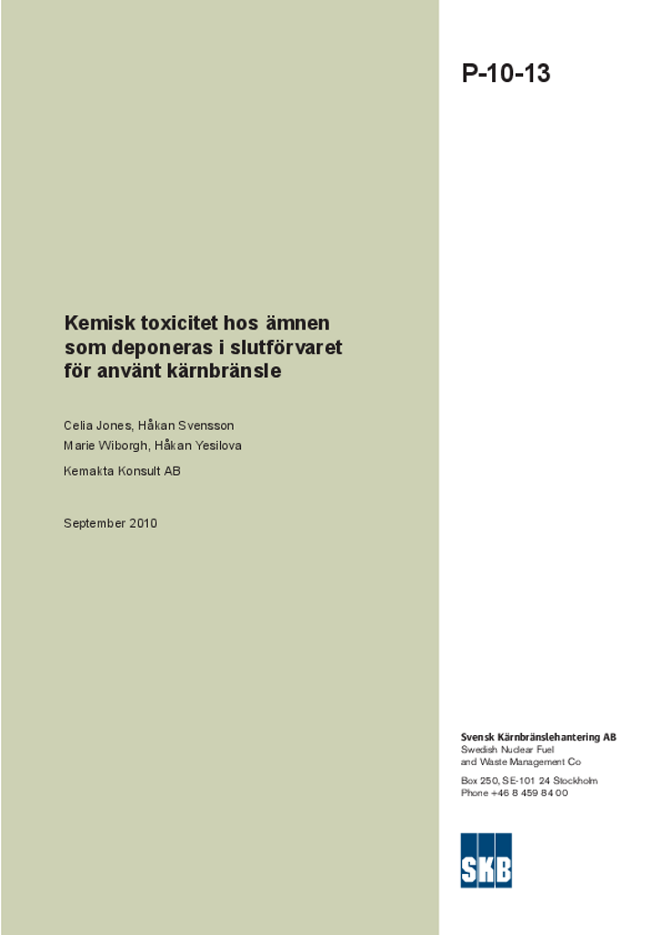 Kemisk toxicitet hos ämnen som deponeras i slutförvaret för använt kärnbränsle. Uppdaterad 2012-05