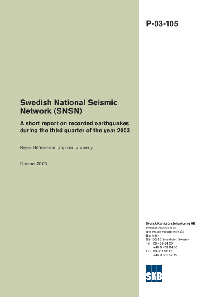 Swedish National Seismic Network (SNSN). A short report on recorded earthquakes during the thid quarter of the year 2003