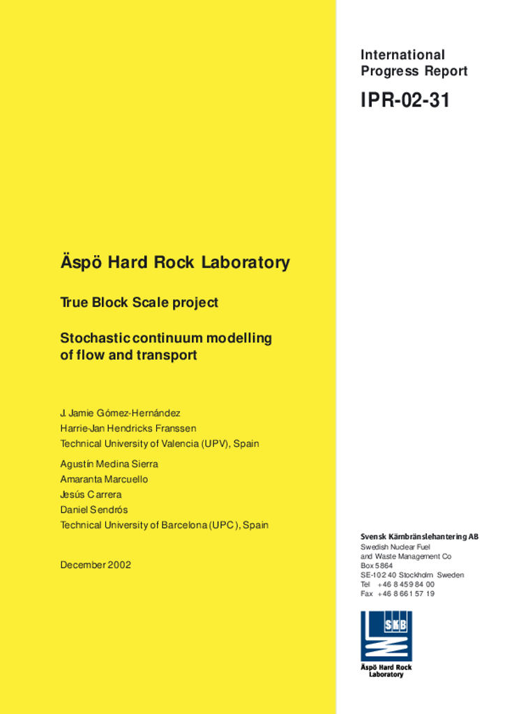 Äspö Hard Rock Laboratory. True Block Scale project. Stochastic continuum modelling of flow and transport