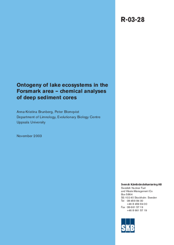 Ontogeny of lake ecosystems in the Forsmark area - chemical analyses of deep sediment cores