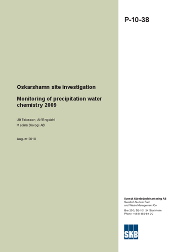 Oskarshamn site investigation. Monitoring of precipitation water chemistry 2009
