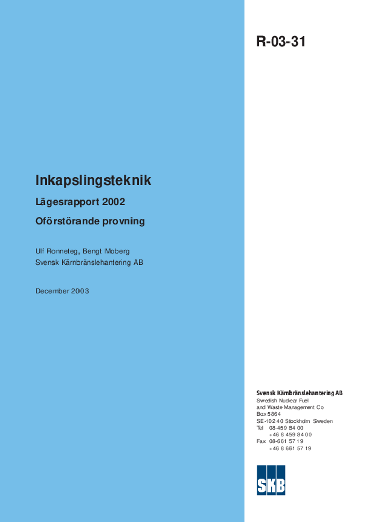 Inkapslingsteknik. Lägesrapport 2002 Oförstörande provning