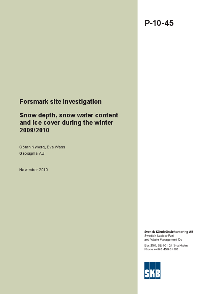 Forsmark site investigation. Snow depth, snow water content and ice cover during the winter 2009/2010