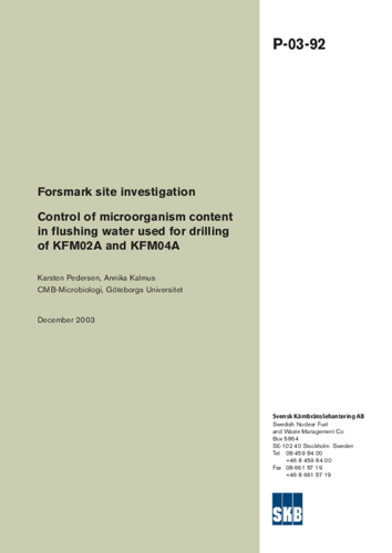 Forsmark site investigation. Control of microorganism content in flushing water used for drilling of KFM02A and KFM04A