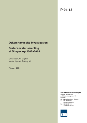 Oskarshamn site investigation. Surface water sampling at Simpevarp 2002-2003