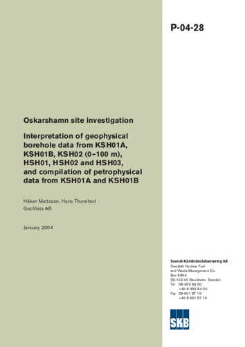 Oskarshamn site investigation. Interpretation of geophysical borehole data from KSH01A, KSH01B, KSH02 (0-100 m), HSH01, HSH02 and HSH03, and compilation of petrophysical data from KSH01A and KSH01B