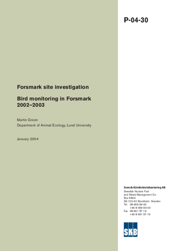 Forsmark site investigation. Bird monitoring in Forsmark 2002-2003