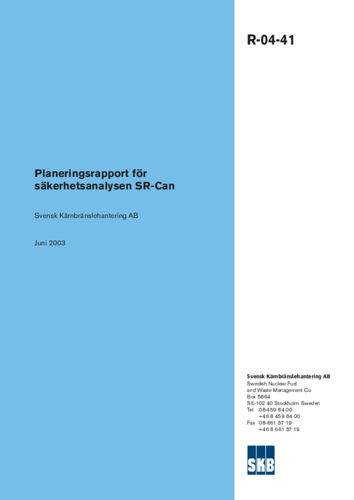 Planeringsrapport för säkerhetsanalysen SR-Can