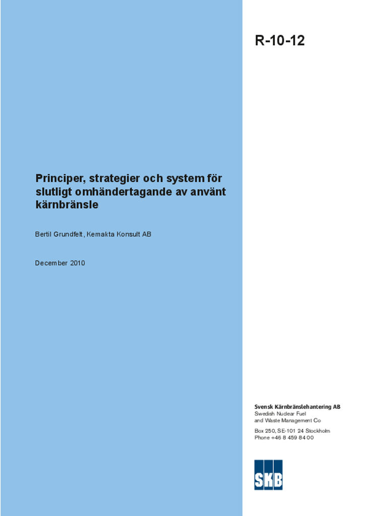 Principer, strategier och system för slutligt omhändertagande av använt kärnbränsle