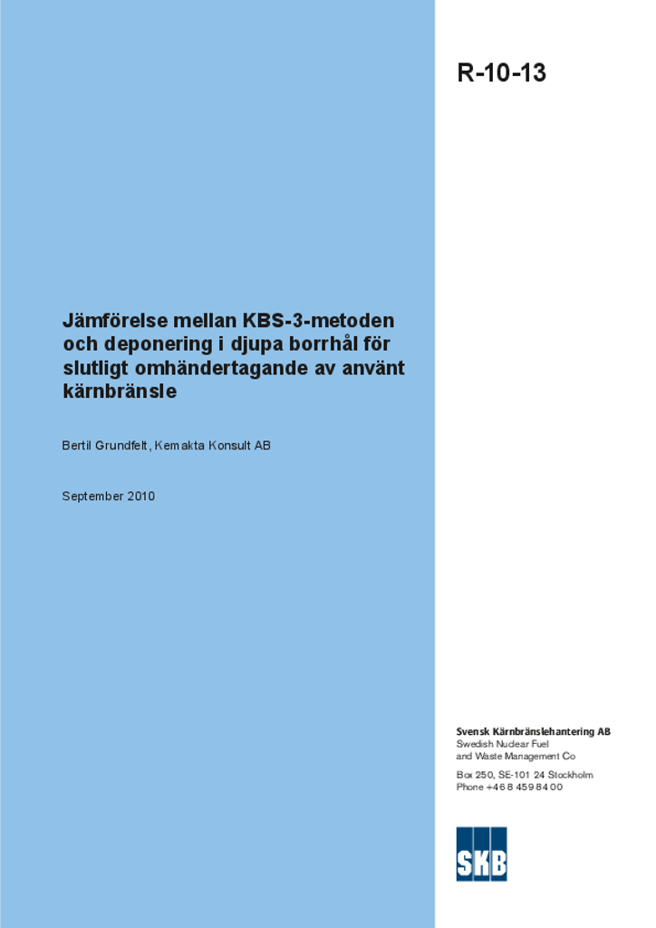 Jämförelse mellan KBS-3-metoden och deponering i djupa borrhål för slutligt omhändertagande av använt kärnbränsle