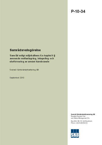 Samrådsredogörelse. Samråd enligt miljöbalkens 6:e kapitel 4 § avseende mellanlagring, inkapsling och slutförvaring av använt kärnbränsle