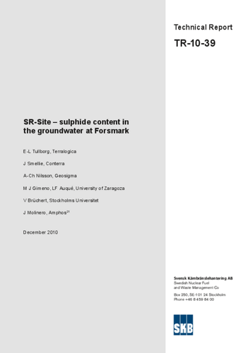 SR-Site - sulphide content in the groundwater at Forsmark. Updated 2013-01