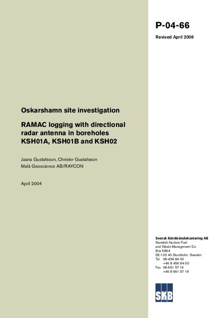 Oskarshamn site investigation. RAMAC logging with directional radar antenna in boreholes KSH01A, KSH01B and KSH02. Revised April 2006