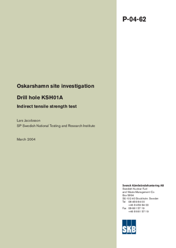 Oskarshamn site investigation. Drill hole KSH01A. Indirect tensile strength test