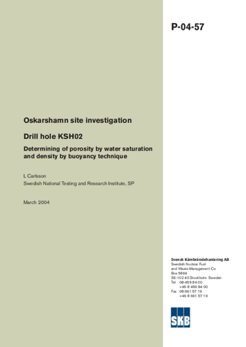 Oskarshamn site investigation. Drill hole KSH02. Determining of porosity by water saturation and density by buoyancy technique