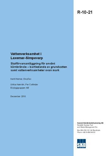 Vattenverksamhet i Laxemar-Simpevarp. Slutförvarsanläggning för använt kärnbränsle - bortledande av grundvatten samt vattenverksamheter ovan mark