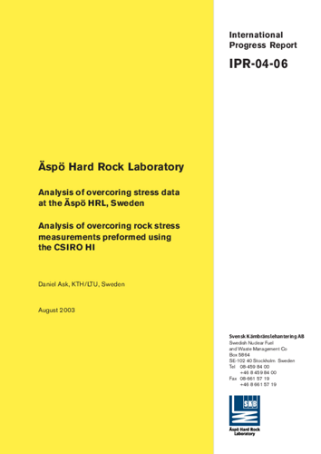 Äspö Hard Rock Laboratory. Analysis of overcoring stress data at the Äspö HRL, Sweden. Analysis of overcoring rock stress measurements preformed using the CSIRO HI