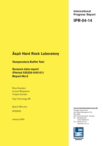 Äspö Hard Rock Laboratory. Temperature buffer test. Sensors data report (period 030326-040101). Report no:2