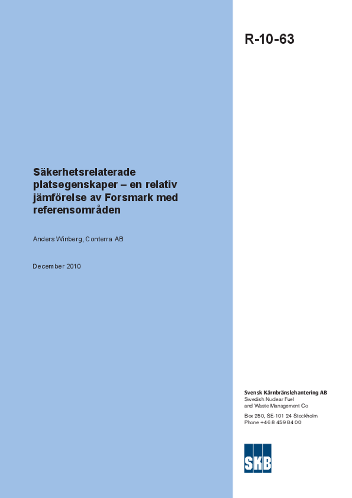 Säkerhetsrelaterade platsegenskaper - en relativ jämförelse av Forsmark med referensområden