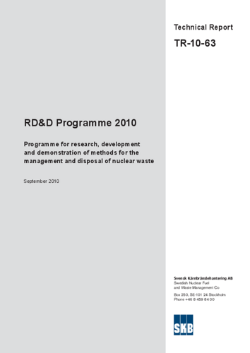 RD&D Programme 2010. Programme for research, development and demonstration of methods for the management and disposal of nuclear waste