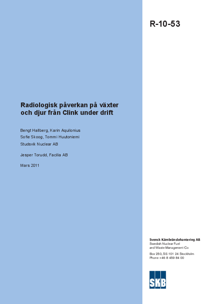 Radiologisk påverkan på växter och djur från Clink under drift Radiologisk påverkan på växter och djur från Clink under drift