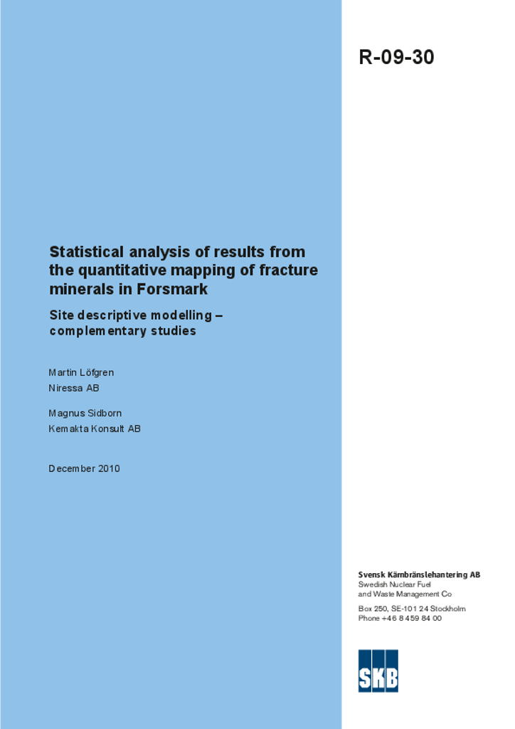 Statistical analysis of results from the quantitative mapping of fracture minerals in Forsmark. Site descriptive modelling - complementary studies