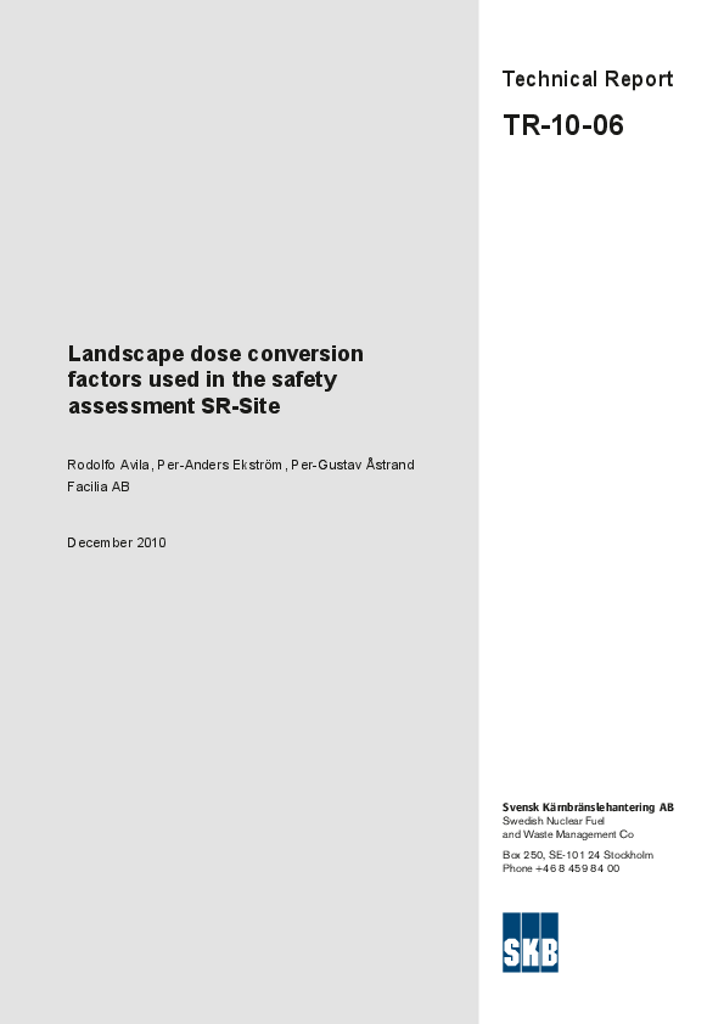 Landscape dose conversion factors used in the safety assessment SR-Site. Updated 2013-08