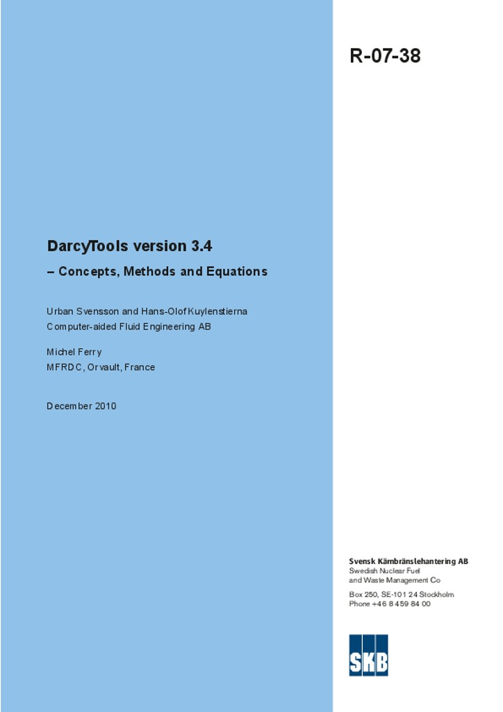 DarcyTools version 3.4 - Concepts, Methods and Equations