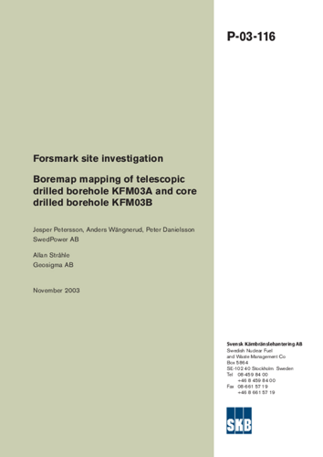 Forsmark site investigation. Boremap mapping of telescopic drilled borehole KFM03A and core drilled borehole KFM03B
